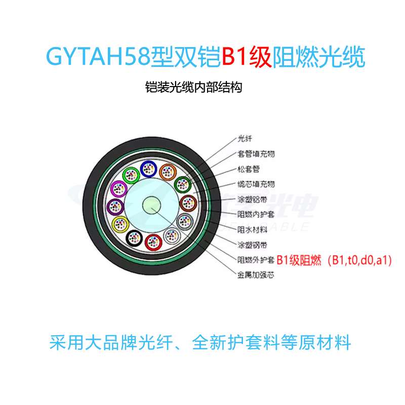 达州市GYTAH58铁路光缆 B1级阻燃光缆(B1,t0,d0,a1) 地铁重铠直埋阻燃光缆